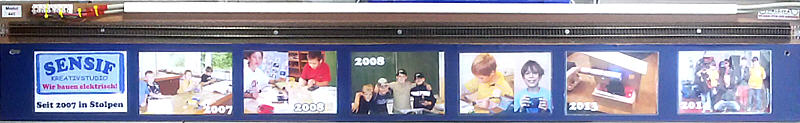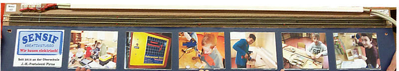 Die hier gezeigten Module entstanden in den Kursen im Rahmen unseres Technikwerkstatt-Projektes oder im Werkzeug-Führerscheinkurs. Die Jungen und Mädchen gestalten ihre Meter nach eigenen Vorstellungen. Von technischen und elektronischen Raffinessen reicht die Palette bis hin zu liebevoll gestalteten Modell-Landschaften. Einige von ihnen entstehen dabei in Gemeinschaftsarbeit über einen längeren Zeitraum hinweg.