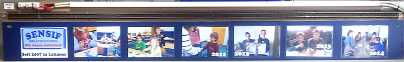 Leon und Lukas, SENSIF-Technikwerkstatt Solpen, VU-Meter, Lautstärkemesser, gebaut zum Abschied im Februar 2016