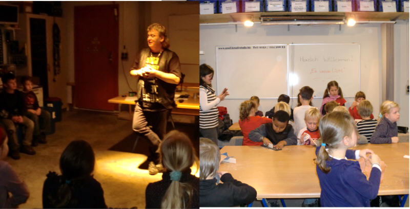 In den Schulferien bieten wir speziell für Hortgruppen im Grundschulalter 3 faszinierende Reisen in die Welt der Naturwissenschaft und Technik. Die Mädchen und Jungen erfahren warum unsere Welt ohne Elektrizität nicht vorstellbar ist, wie man Energie umweltverträglich gewinnen kann, woher eigentlich Töne kommen und wie man sie speichert oder warum es die Farbe SCHWARZ nicht gibt - farbige Schatten hingegen schon. Abgerundet wird die ca. 2 stündige Vormittagsveranstaltung mit einem in wenigen Minuten selbst gebautem "elektrischen Gerät", welches man sogar mit nach Hause nehmen kann.