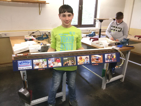 Und hier schraubt Tom am ersten von insgesamt voraussichtlich 6 Metern für die Pestalozzi-Oberschule Pirna