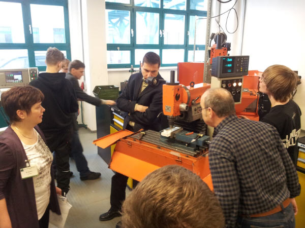 Frau Socher, Leiterin des Bereichs Metalltechnik (links im Bild)